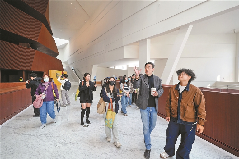 远观鹭湖艺术中心,是白色巨“盒”堆砌而成的不规则形态;步入其中,“木桶”造型的空间设计则让人眼前一亮。“整个大剧院以白色与原木色为主色调,风格纯粹简约。”陆轶辰说,独创的原木色木桶造型,将剧场巧妙“藏”于其中,一侧是可容纳超千人的大剧场,另一侧是灵动多元的黑匣子剧场,“这一设计没有复刻任何现有大剧院的风格,是属于鹭湖的独家印记。”