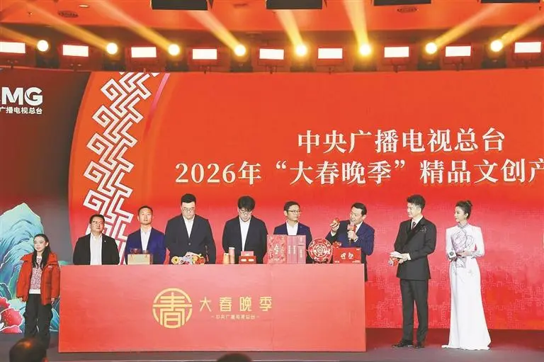 “全国的观众朋友们,大家新年好!”在2026年马年春节联欢晚会上,国瓷永丰源集团董事长刘权辉手捧“马到成功·金春碗”向全国观众拜年。蔡明带来的小品《奶奶的最爱》,背景橱窗里摆放着“金春碗”和“十二骏摆盘”,这是龙华区企业国瓷永丰源生产的瓷器首次亮相春晚。