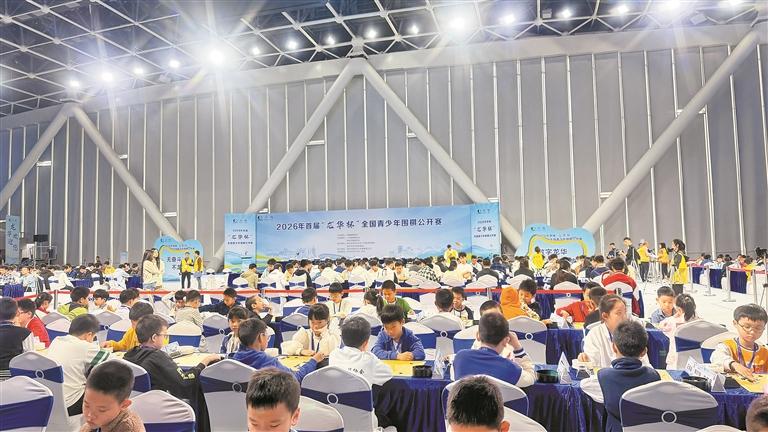 2月26日,2026年首届“龙华杯”全国青少年围棋公开赛在龙华文体中心正式开赛,来自全国各地的近800名青少年围棋好手齐聚一堂,在黑白棋子的交错中展开智慧交锋,以棋会友、切磋技艺。龙华区副区长赵妍妍出席活动并宣布赛事开幕。
