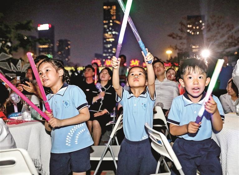 “以前在香港过的六一儿童节,学校会开展摊位游戏、表演会等,今年在深圳龙华过节,感觉今晚的无人机表演非常震撼!”“我曾收到过一本‘三字经’礼物,让我认识到中国传统文化需要用更多的时间去钻研。”来自深圳香港培侨书院龙华信义学校的学生们纷纷说出自己心情,分享感受。